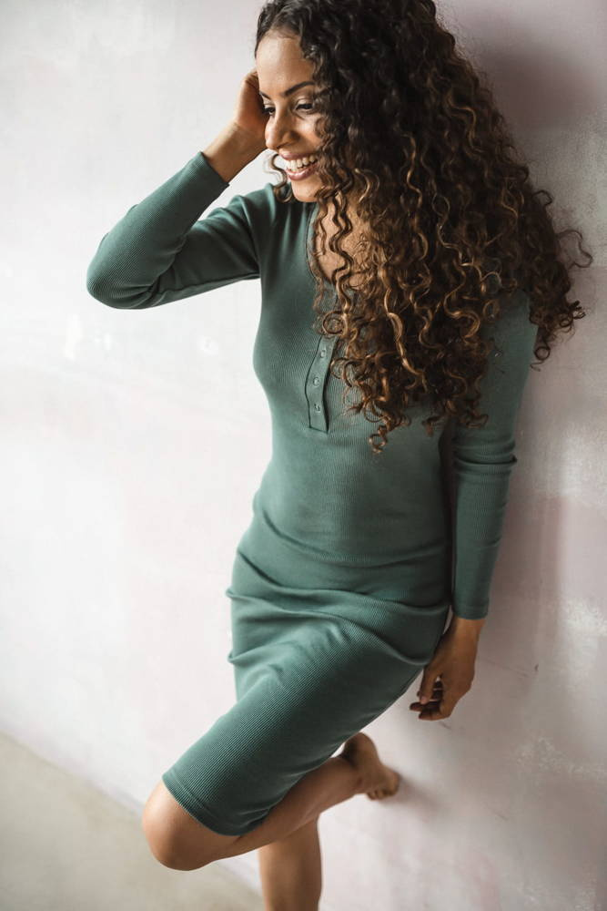Wygodna sukienka ciążowa uszyta z wysokiej jakości dzianiny, która się nie odkształca! Ma dopasowany krój, a dzięki napom przy dekolcie swobodnie nakarmisz w niej maluszka. Można ją nosić także po ciąży, jako zwykłą sukienkę typu bodycon! Idealna na co dzień i na specjalne okazje Została uszyta z miękkiej dzianiny, która przeszła rygorystyczne testy Oeko-Tex Standard 100. Bawełniana dzianina zachowuje gładkość i głęboki kolor nawet po wielu praniach. Uszyta w Polsce!