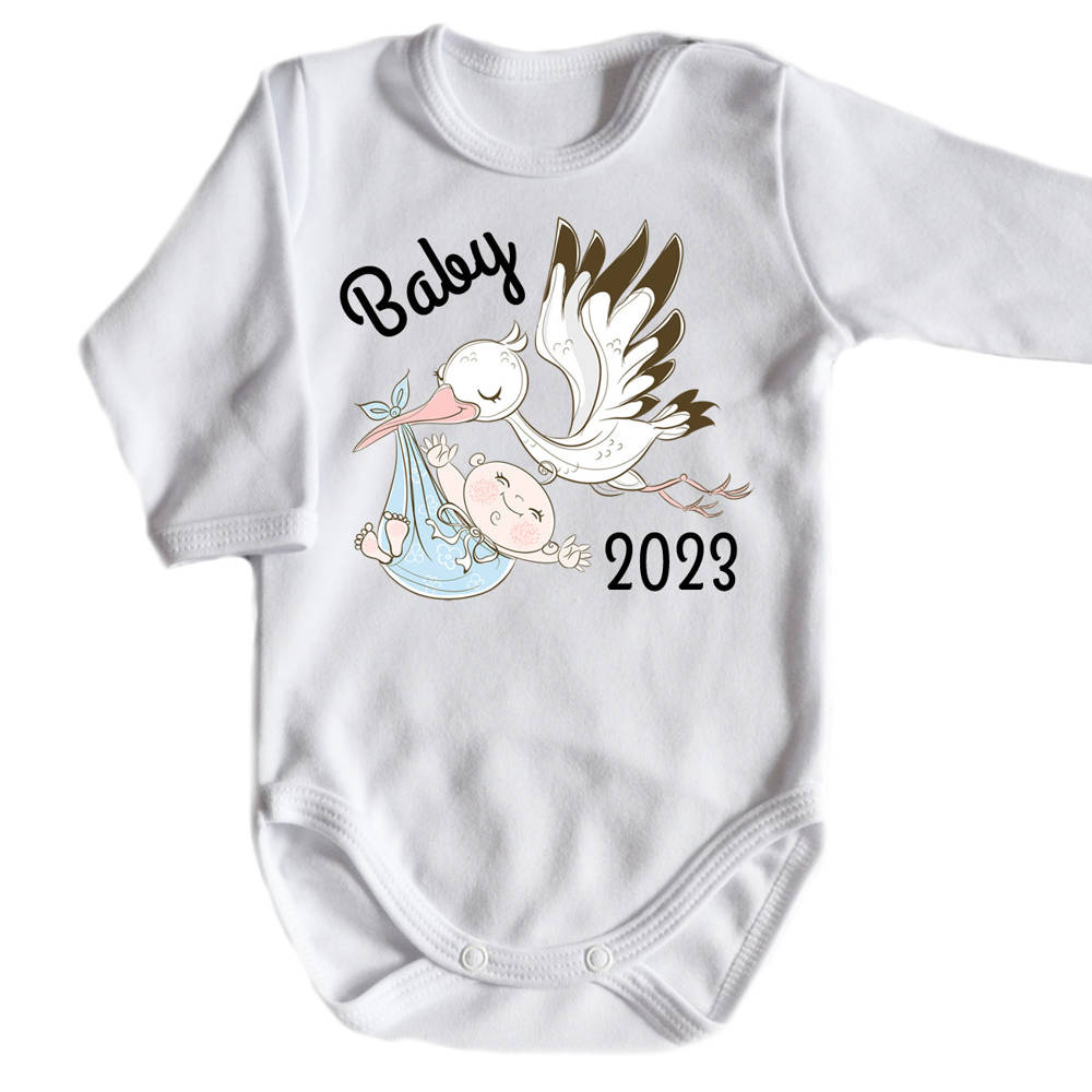 "BABY 2023 born in" Moocha Body długi rękaw biały