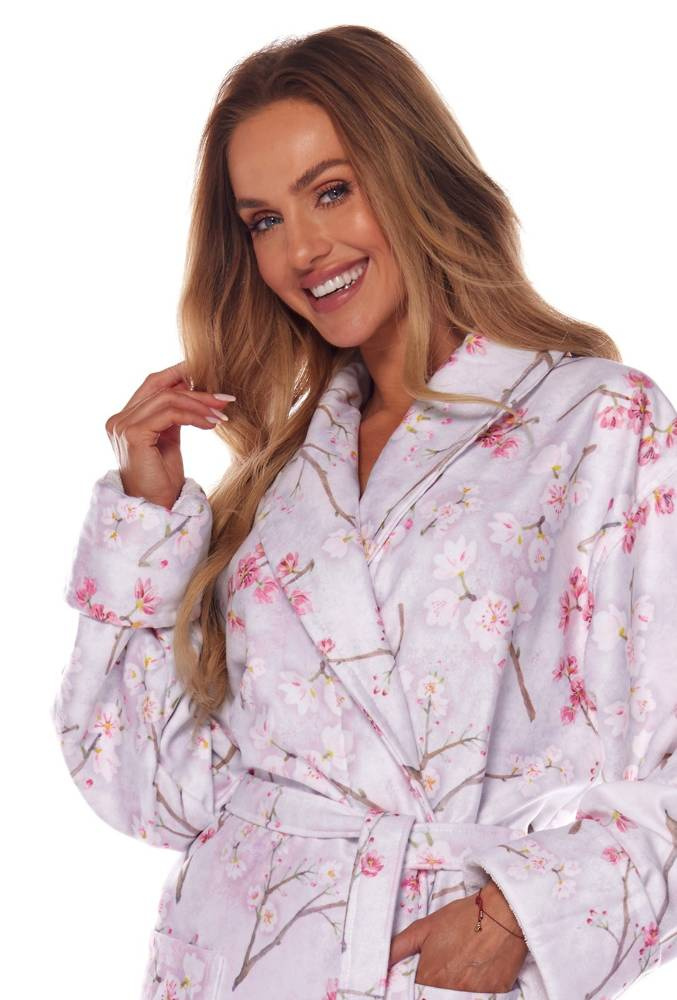 Długi szlafrok damski z szalowym kołnierzem wykonany z miękkiej dzianiny typu soft z dodatkiem bambusa