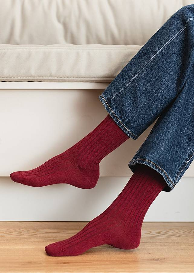 ART.130 Natural Merino Wool Skarpety damskie prążek Steven -002 bordowy
