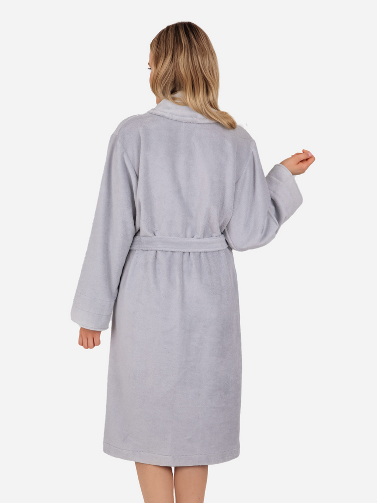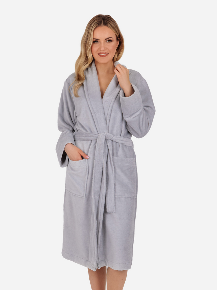 Szlafrok z linii Premium. Wykonany z miękkiej i delikatnej, a zarazem niezwykle chłonnej tkaniny. Jest to praktyczny i obowiązkowy produkt w Twoim domu. Doskonale sprawdzi się do codziennego użytku po kąpieli, a także na basenie czy w SPA. W ciepłe dni poczujesz uczucie chłodu, a w chłodnych miesiącach otulisz się ciepłem szlafroka. Szlafrok posiada dwie praktycznie kieszenie. Idealnie sprawdzi się, jako praktyczny, a zarazem oryginalny prezent. Nasze produkty tworzymy w sposób komplementarny, czyli tak, aby do siebie pasowały i wzajemnie się uzupełniały. Szlafroki szyte ręcznie z najwyższą dokładnością i dbałością o każdy detal. Szlafroki wyprodukowane w Polsce.