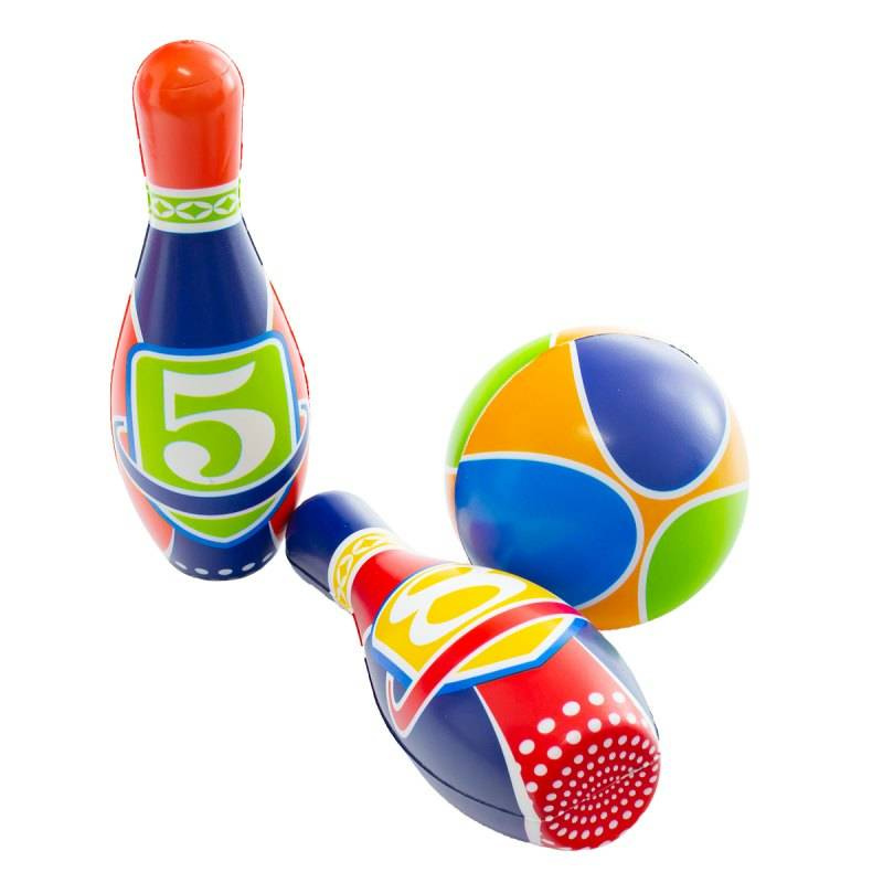 Zestaw piankowych kręgli do zabawy. Kręgle posiadają bogate kolory z namalowanymi cyframi. Do zestawu dołączone są 2 kule do rzucania. Wspomagają rozwój sensoryczny, umiejętności motorycznych i koordynacji wzrokowo ruchowej.