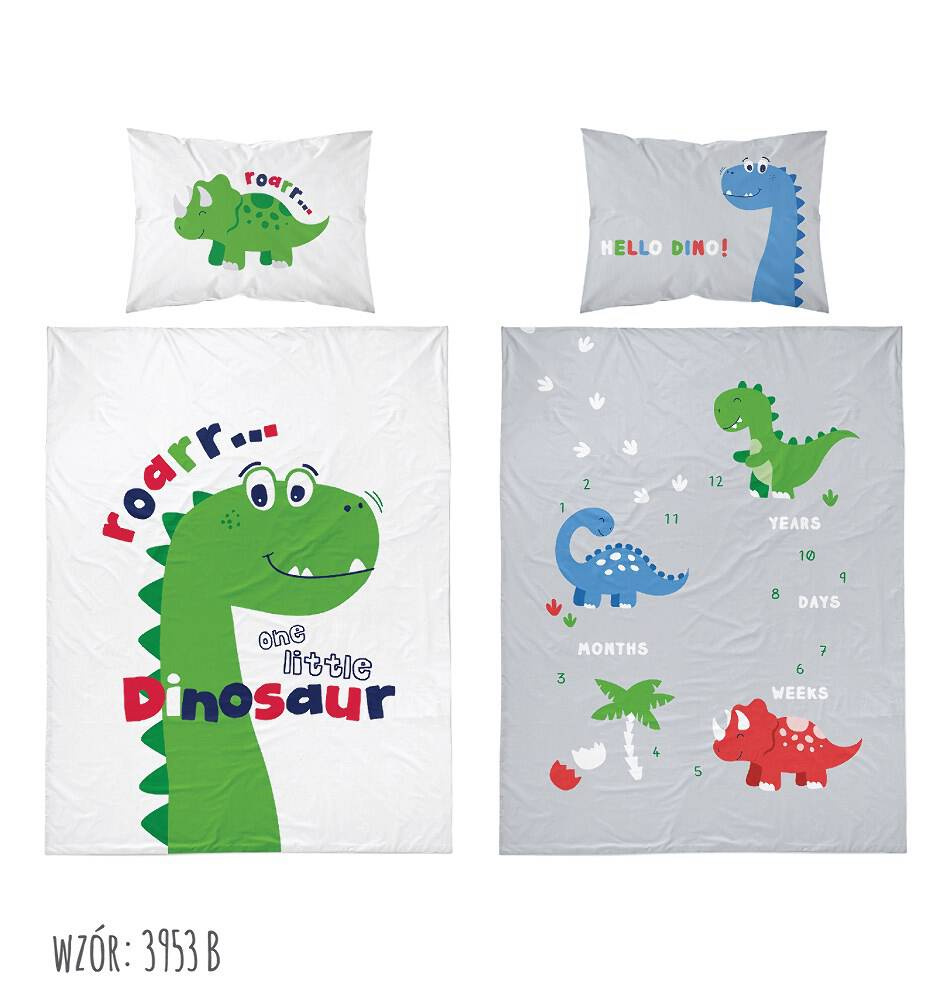 3953 B Mayamoo 105 Pościel bawełniana do łóżeczka dinozaur Detexpol zielony