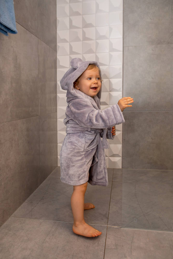 Teddy Szlafrok dziecięcy z uszkami ByShelly - jasny szary