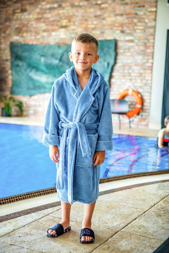 Szlafrok wykonany z miękkiej i delikatnej, a zarazem niezwykle chłonnej tkaniny. Wewnętrzna strona tkaniny, która ma styczność ze skórą waszego dziecka jest wykonana z przędzy bambusowo-bawełnianej jest przyjemna i delikatna dla skóry Waszego maluszka. Jest to praktyczny i obowiązkowy produkt w wyprawce Twojego dziecka. Doskonale sprawdzi się do codziennego użytku po kąpieli, a także na basenie. W ciepłe dni Twoje dziecko poczuje uczucie chłodu, a w chłodnych miesiącach otuli się ciepłem szlafroka. Szlafrok posiada dwie praktycznie kieszonki.