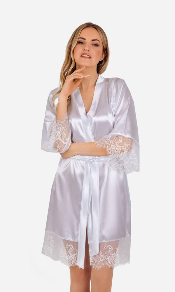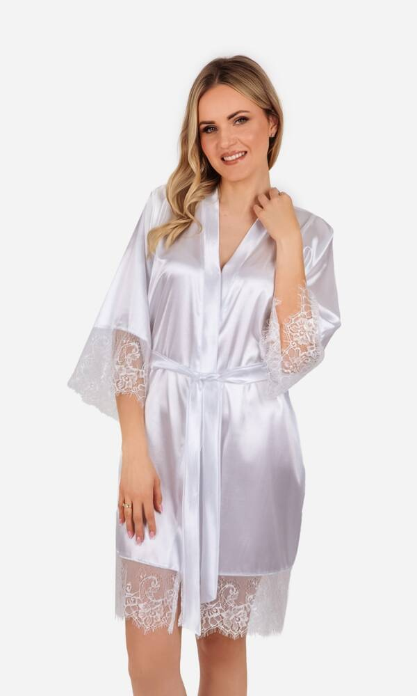 Gloria Szlafrok damski z koronką ByShelly - biały