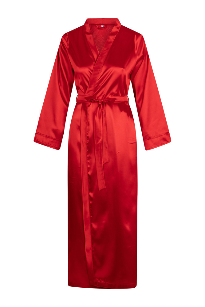 Eunika Szlafrok damski satynowy długi ByShelly - czerwony