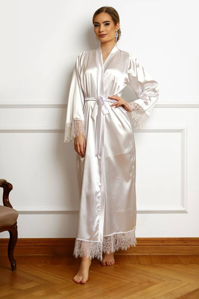 kraj produkcji: POLSKADługi szlafrok uszyty z delikatnej satyny. Dół szlafroka oraz rękawy wykończone subtelną koronką. Delikatność tkaniny sprawia, że każda kobieta poczuje się w nim komfortowo. Do szlafroka dołączony pasek. Model Eunika jest bardzo efektowny co sprawia, że każdy wieczór oraz poranek będzie miły oraz przyjemny.