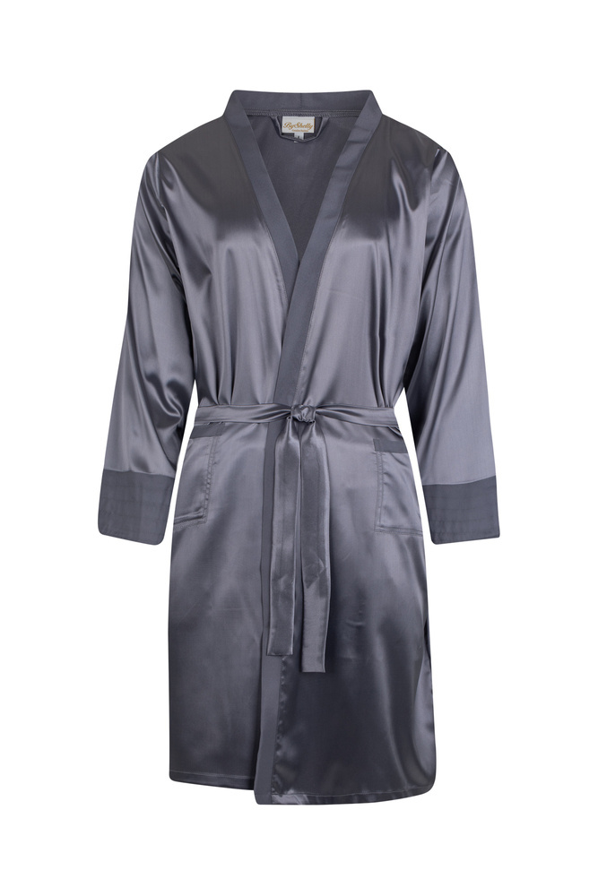 Szlafrok męski uszyty z delikatnej satyny. Delikatność tkaniny sprawia, że będziesz czuł się w nim komfortowo. Do szlafroka dołączony jest pasek. Model ten posiada kieszenie na wysokości bioder. Jest bardzo efektowny co sprawia, że każdy wieczór oraz poranek będzie wyjątkowy.