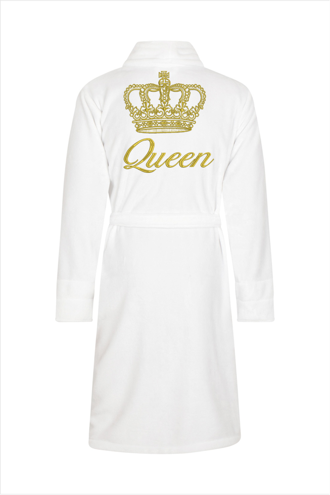 Queen + Korona Szlafrok damski polarowy ByShelly - biały/złoty