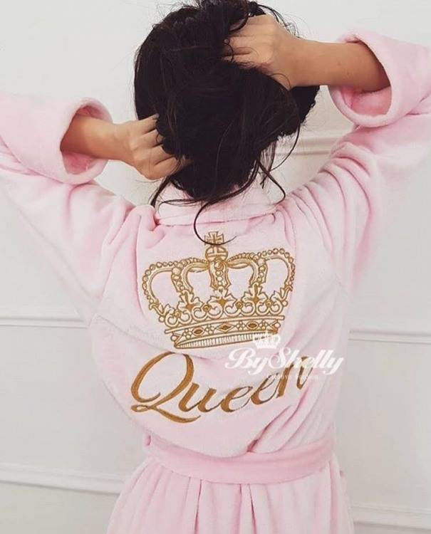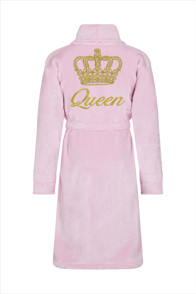 Queen + Korona Szlafrok damski polarowy ByShelly - jasny róż/złoty