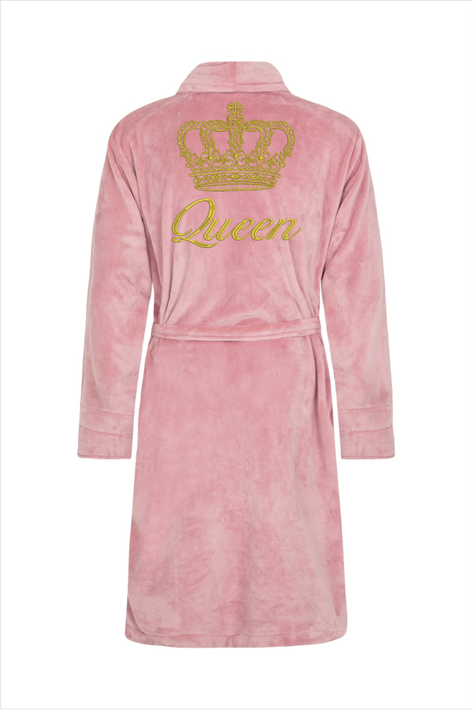 Queen + Korona Szlafrok damski polarowy ByShelly - brudny róż/złoty
