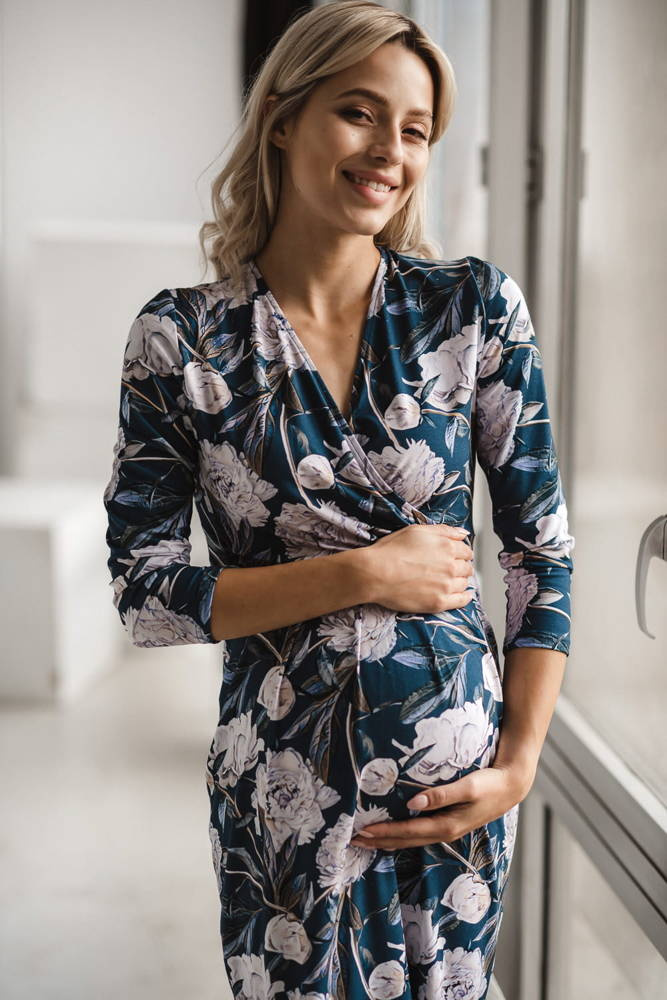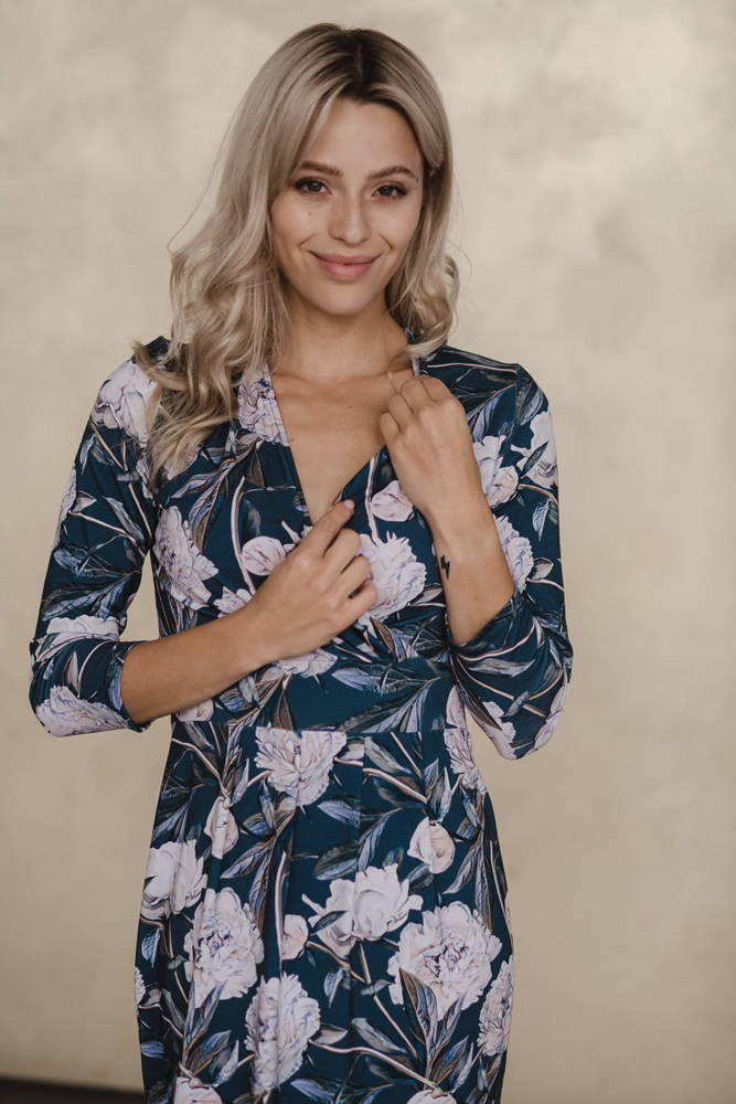 Grow with me sukienka ciążowa i do karmienia Milk&Love granatowa w piwonie