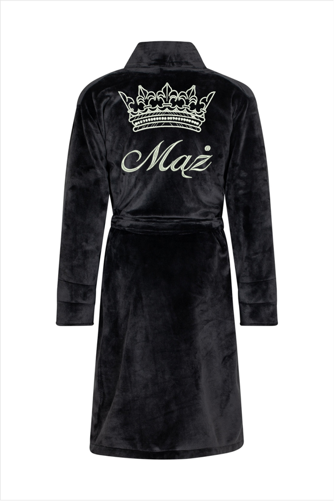 Mąż + Korona Szlafrok męski polarowy ByShelly - czarny/srebrny (1 szt.)