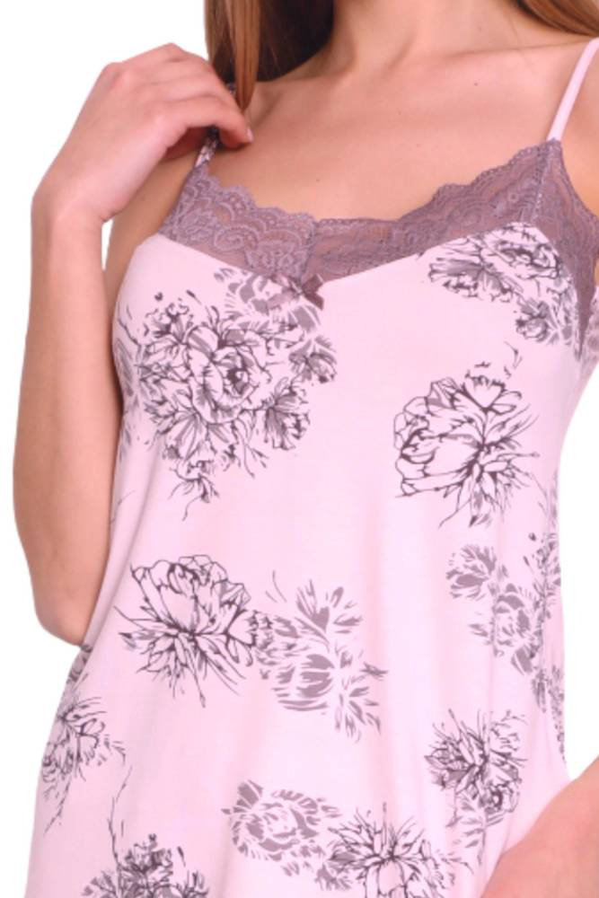 Wiskozowa piżama damska na ramiączkach z kwiecistym motywem. Model został wykonany z delikatnej, miękkiej i gładkiej wiskozy, która jest jednym z najlepiej oddychających i najbardziej przyjaznych dla skóry materiałów. Wykończona została delikatną koronką na dekolcie. Ramiączka są regulowane. Model idealnie nadaje się na ciepłe, wiosenno-letnie noce. Zapewni najwyższy poziom komfortu w trakcie snu.