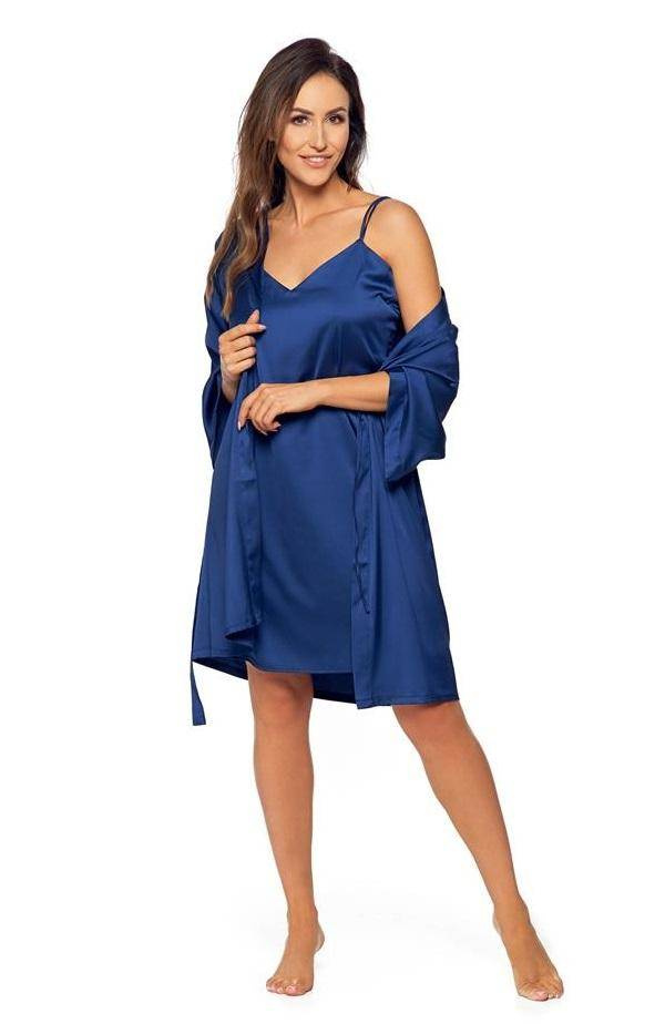 Adela Szlafrok damski satynowy Moraj - granatowy