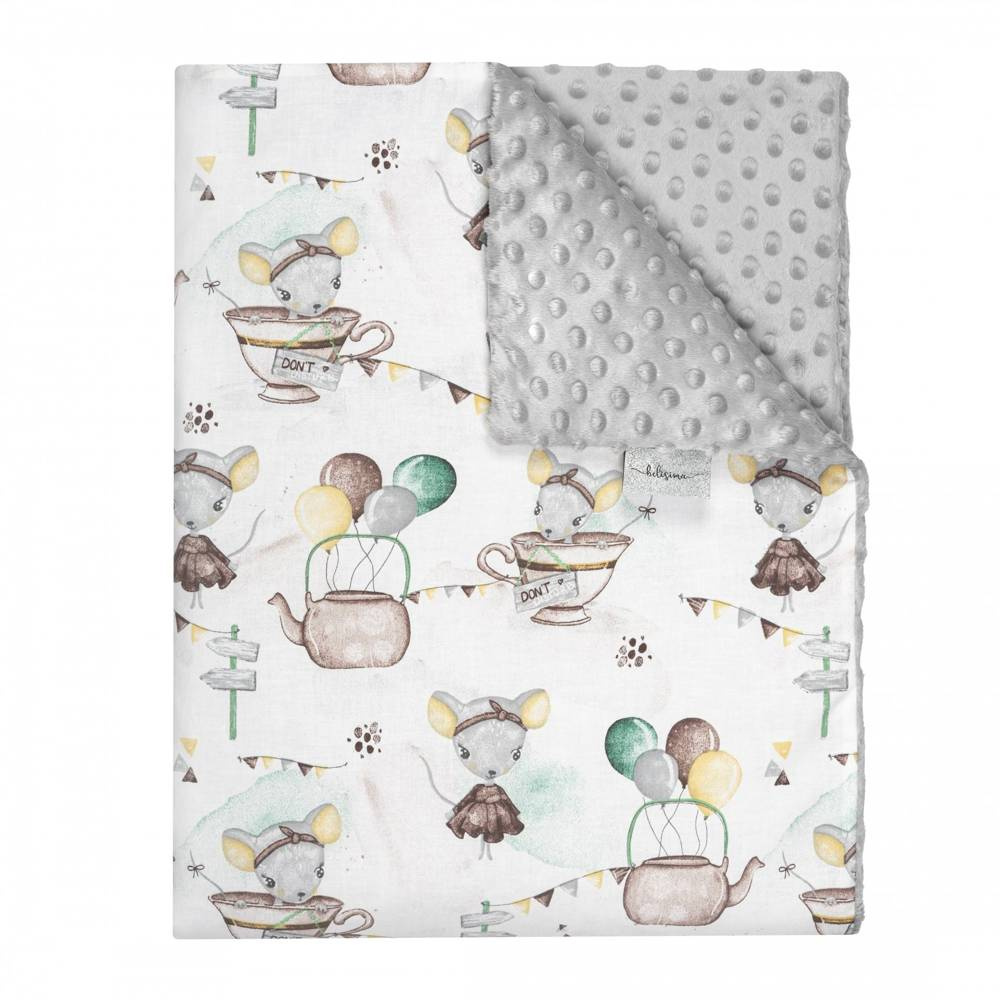 Mięciutki kocyk który może być wykorzystany zarówno do okrycia dziecka jak i do zabawy. Bawełna z drugiej strony minky.
