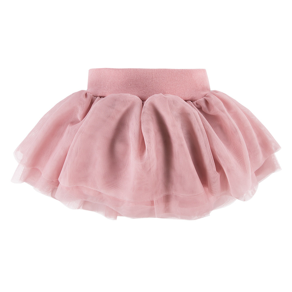 Spódnica z kolekcji Ceremony uszyta z miękkiej i przyjemnej w dotyku dzianiny i tiulu. W pasie znajduje się guma nie uwierająca brzuszka dziecka.