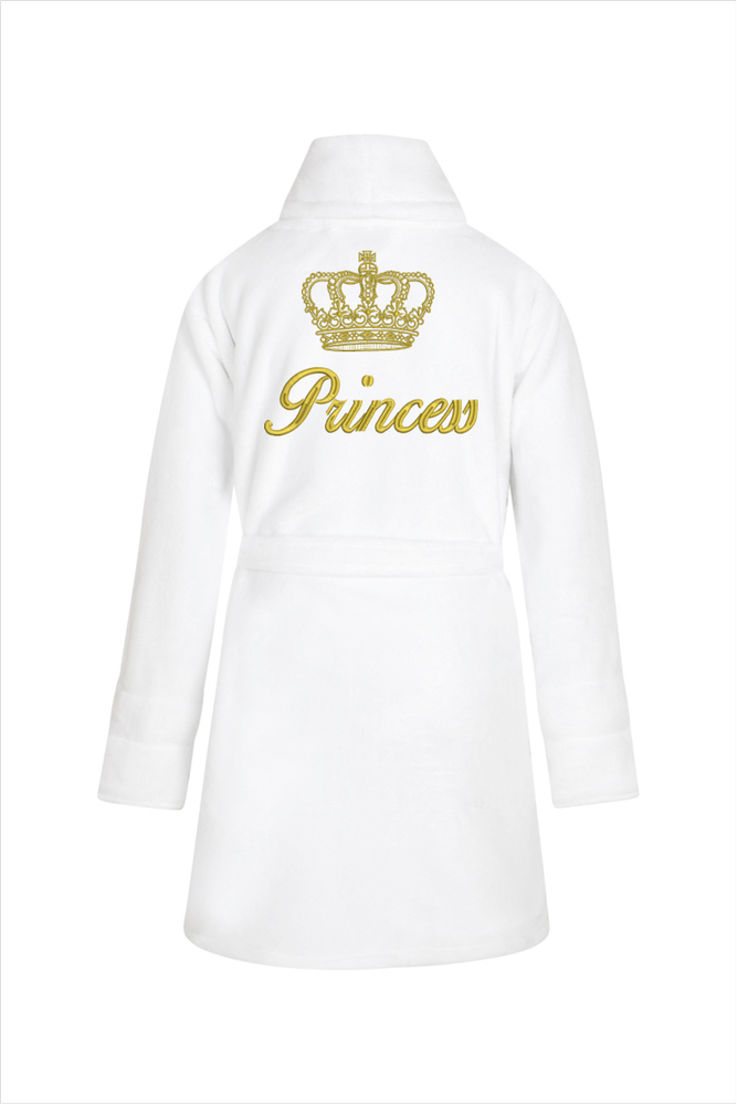 Princess + korona Szlafrok dziecięcy polarowy ByShelly - biały/złoty