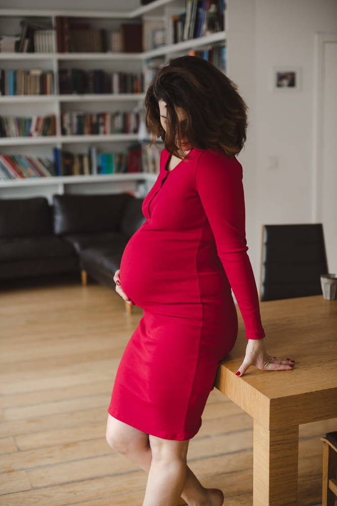 Wygodna sukienka ciążowa uszyta z wysokiej jakości dzianiny, która się nie odkształca! Ma dopasowany krój, a dzięki napom przy dekolcie swobodnie nakarmisz w niej maluszka. Można ją nosić także po ciąży, jako zwykłą sukienkę typu bodycon! Idealna na co dzień i na specjalne okazje Została uszyta z miękkiej dzianiny, która przeszła rygorystyczne testy Oeko-Tex Standard 100. Bawełniana dzianina zachowuje gładkość i głęboki kolor nawet po wielu praniach. Uszyta w Polsce!