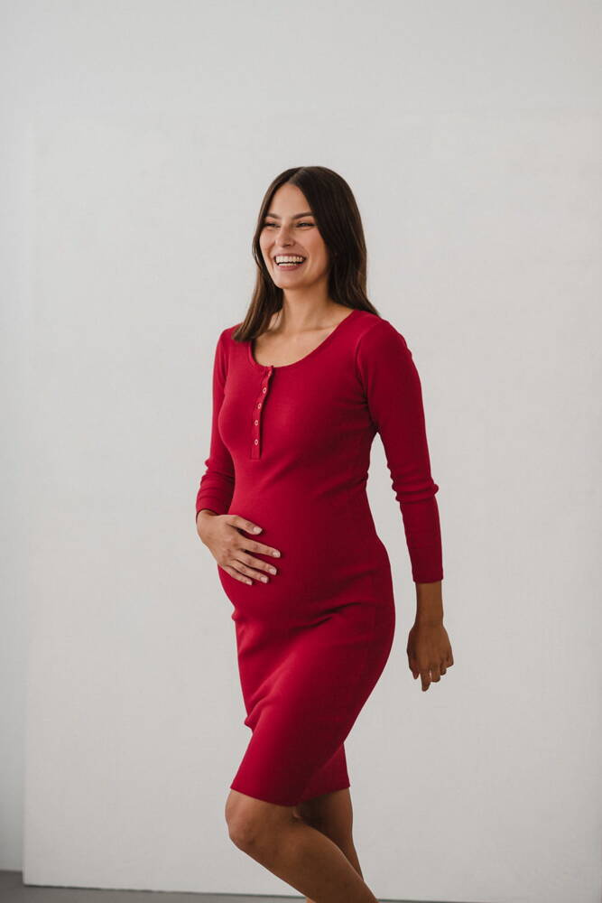 Tummy Sukienka ciążowa i do karmienia z dzianiny w prążek Milk&Love karminowy