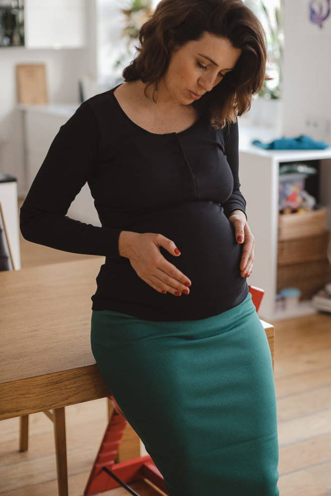 • Zaprojektowana z myślą o tym, aby pomieścić rosnący ciążowy brzuszek.