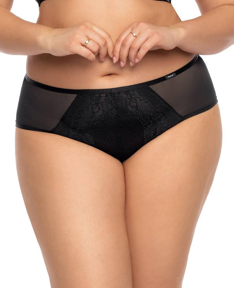 Pełne figi wykonane z delikatnego tiulu oraz efektownej koronki, zapewniają komfort użytkowania oraz modelują sylwetkę.