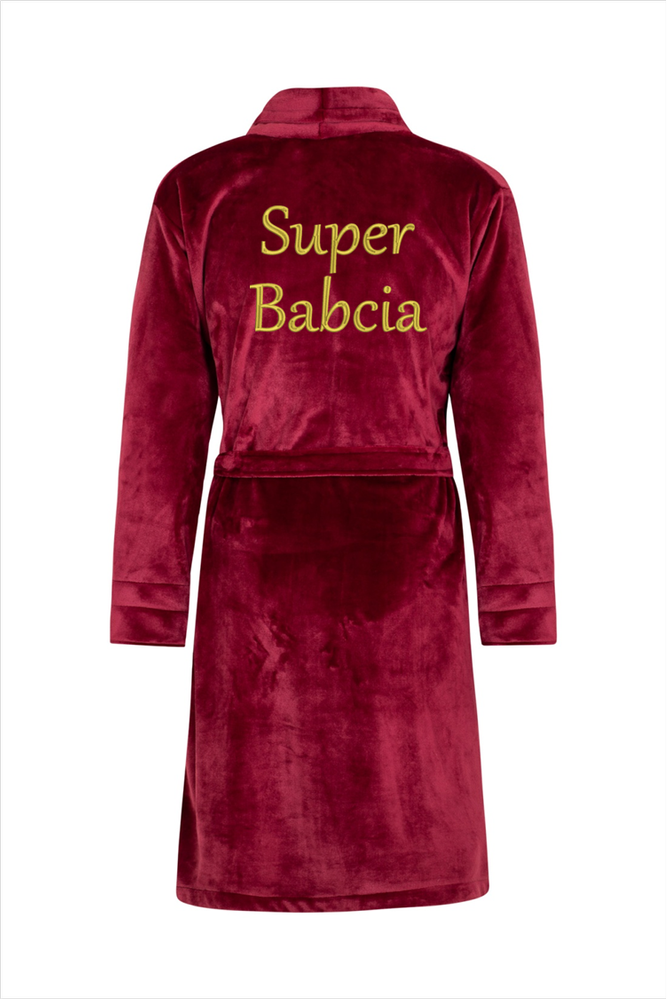 Super Babcia Szlafrok damski polarowy ByShelly - bordowy/złoty