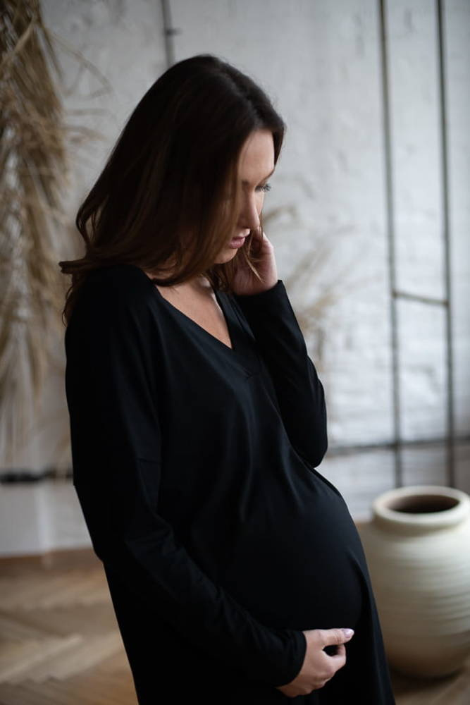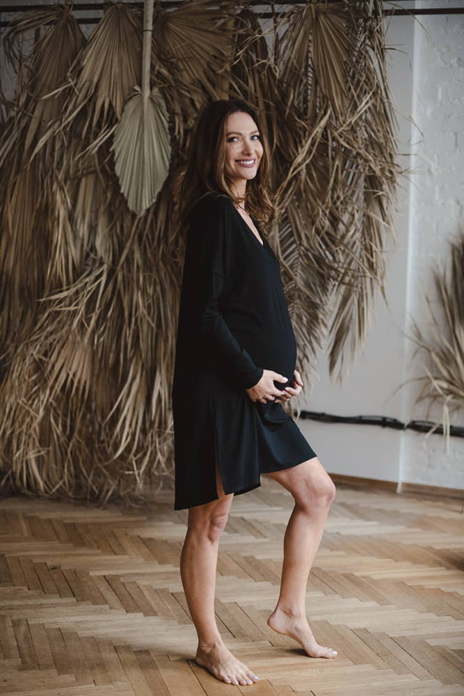 Moon bambusowa koszula nocna ciążowa i do karmienia długi rękaw Milk&Love czarny