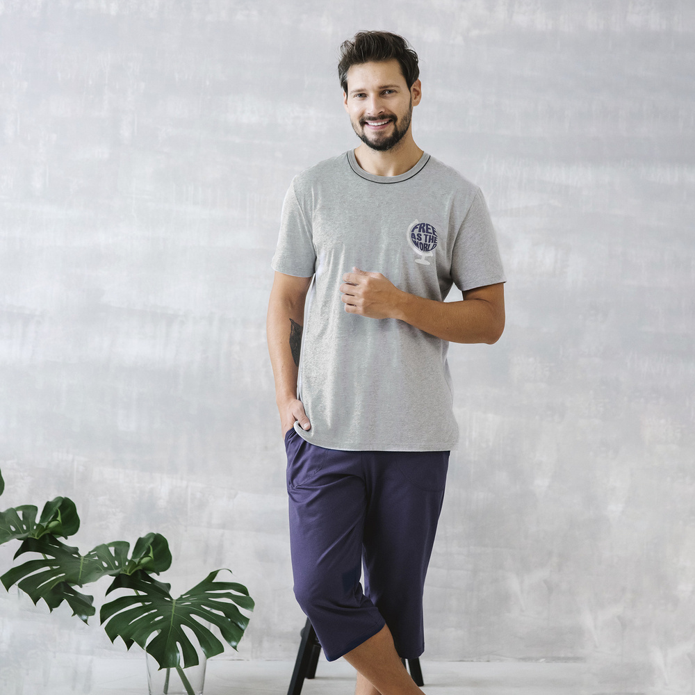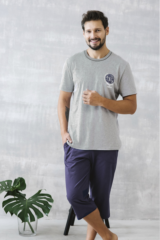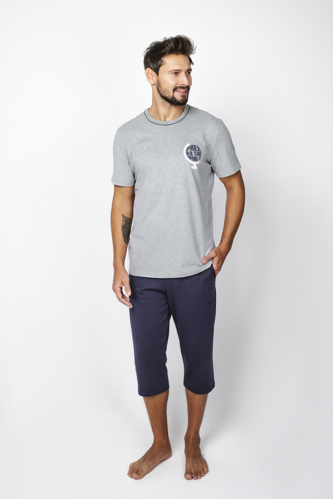 Abril Piżama Męska krótki rękaw, 3/4 spodnie Italian Fashion - szary