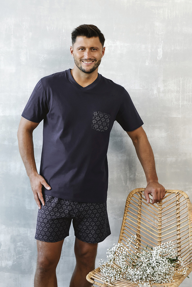 Diaz Piżama Męska krótki rękaw, spodenki Italian Fashion - granatowy/druk