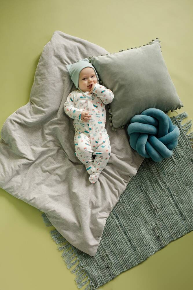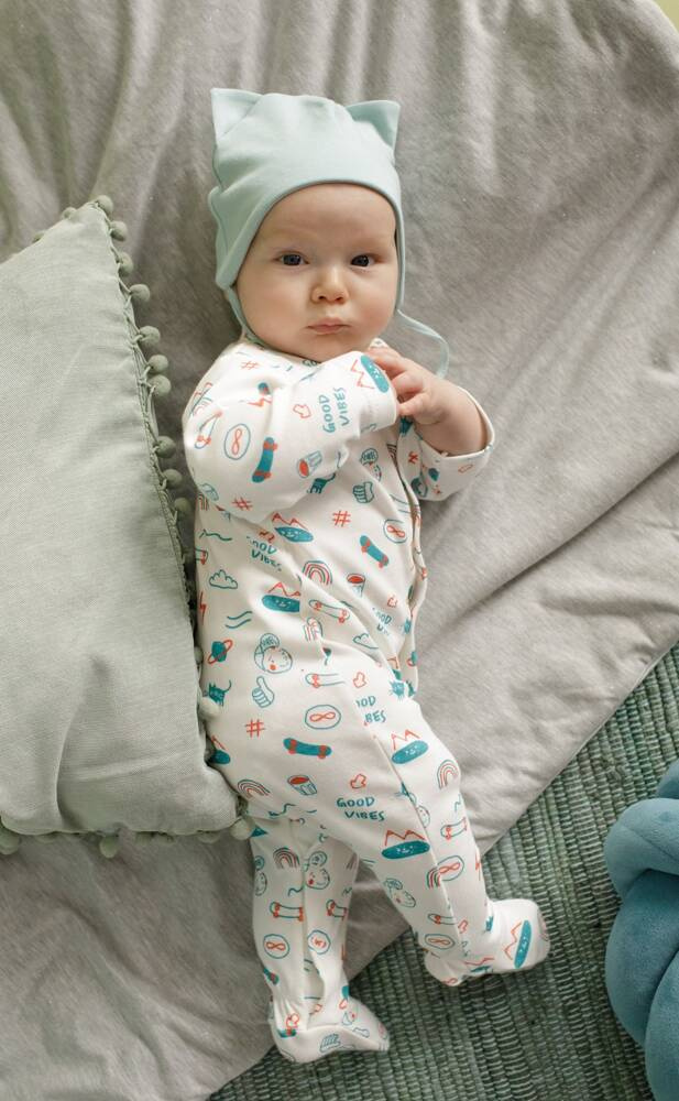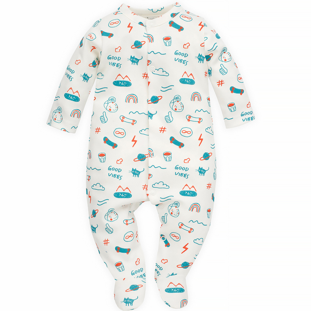 Bawełniany pajac niemowlęcy z nadrukiem.