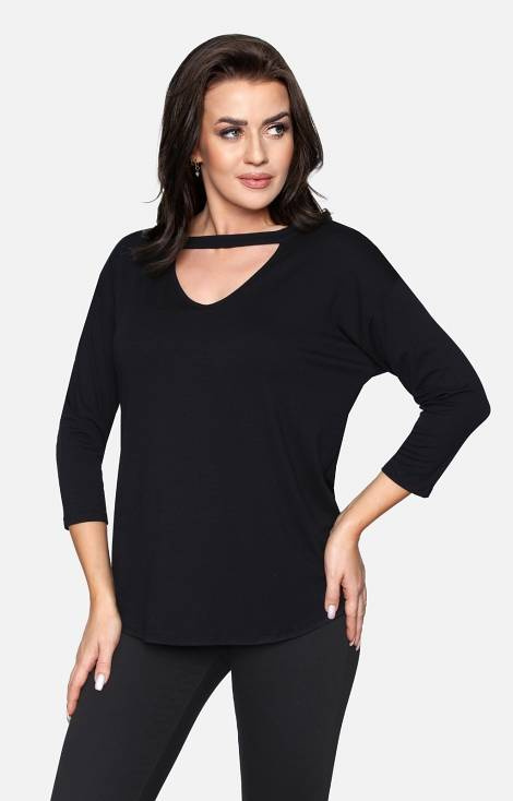 Bluzka damska z dekoltem typu choker. Luźny krój oversize będzie się dobrze prezentować na każdej sylwetce. Rękawy długość 3/4.