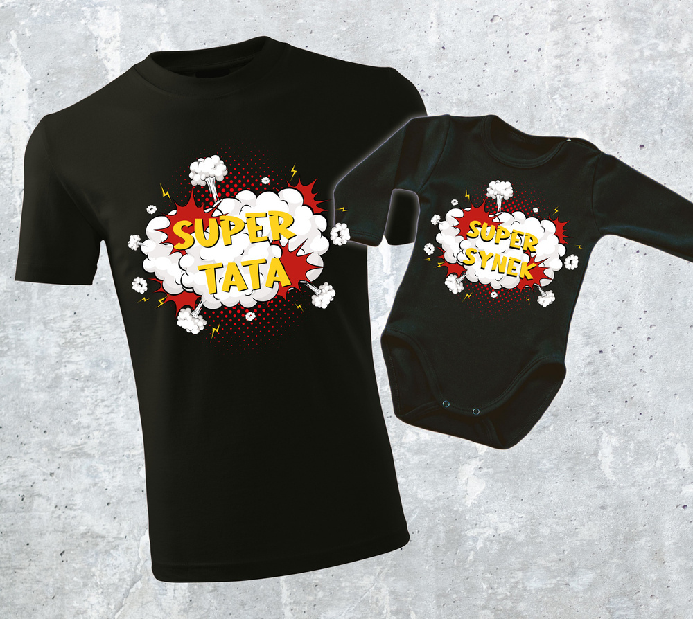 "SUPER TATA + SUPER SYN" Moocha Komplet dla taty i syna koszulka + body