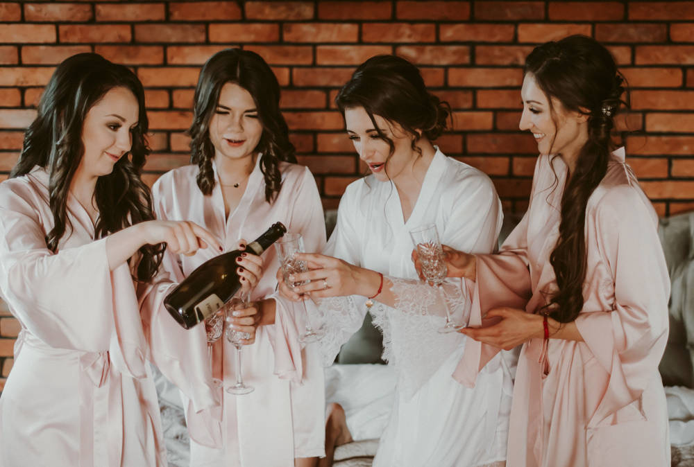 Świadkowa Szlafrok damski satynowy ByShelly - różowy/srebrny
