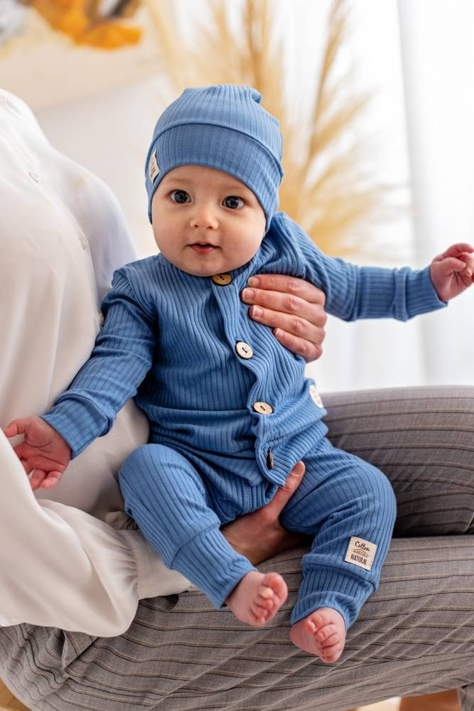 W pasie wszyta jest nieuciskająca gumka, która utrzymuje ubranko na miejscu. Krój zapewnia maluchowi komfort noszenia i nie krępuje ruchów.