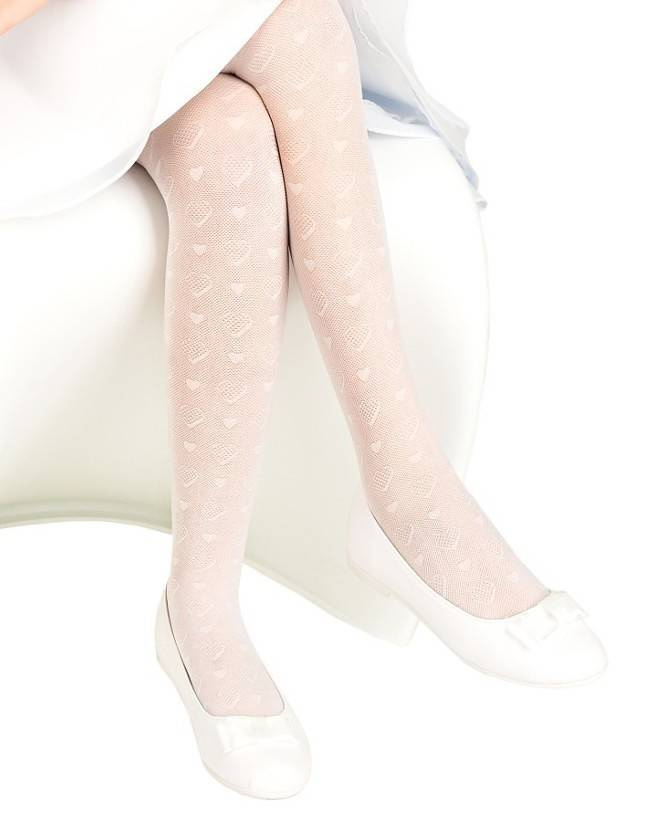 Rajstopy dziewczęce ozdobione wzorem w serduszka o grubości 30 den