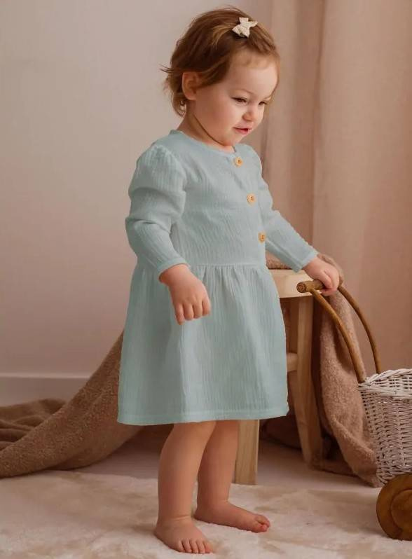 Sukienka uszyta z miękkiej i przyjemnej w dotyku bawełny muślinowej.
