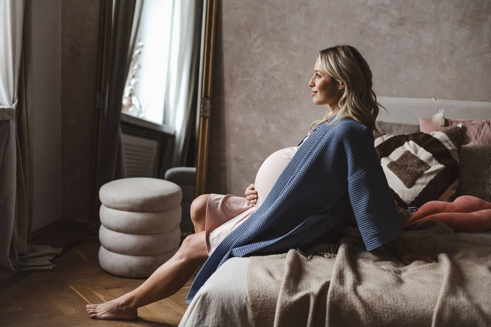 Szlafrok został zaprojektowany z myślą o mamach, dlatego jest nieco dłuższy, abyś spokojnie okryła nim ciążowy brzuszek. Po porodzie bez skrępowania b będziesz mogła spacerować po szpitalnym korytarzu lub na leżąco nakarmiła maluszka w połogu. Posiada kieszenie na niezbędne drobiazgi i pasek do regulowania szerokości.