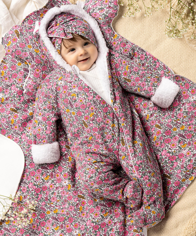 Mięciutki kombinezon–myszka rozpinany na suwaczek po całości, w rękawkach ma wszyte łapki. Na kapturku znajdują się uszka. Podszewka w kolorze białym. Kombinezon zapewni bobasowi odpowiednią ochronę przed chłodem podczas spacerów, a do tego sprawi, że maluszek będzie się świetnie prezentować.