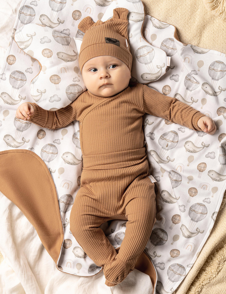 Wygodne i miękkie półśpioszki, uszyte z prążkowanej bawełny z niewielką ilością elastanu. Wysoka jakość materiału została potwierdzona certyfikatem Oeko-Tex Standard 100 Tekstylia godne zaufania. Półśpioszki mają luźny fason i lekko obniżony stan by pomieścić pieluszkę, posiadają szeroki, bezuciskowy pas zapewniający pełny komfort maluszkowi.