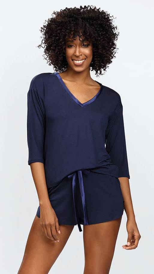 Komplet Edith to wygoda i elegancja w jednym. Ten komplet spodoba się niejednej Kobiecie, która lubi czuć się komfortowo i glamour w domu. Komplet składa się z krótkich wiskozowych spodenek, jednak przełamanie satynową wstążką w pasie nadaje mu bardziej eleganckiego charakteru. Góra kompletu to luźna bluza na długi rękaw, której dekolt w serek również obszyty jest beżową satyną. Całość wygląda naprawdę zjawiskowo. Poczuj się elegancko w domu.