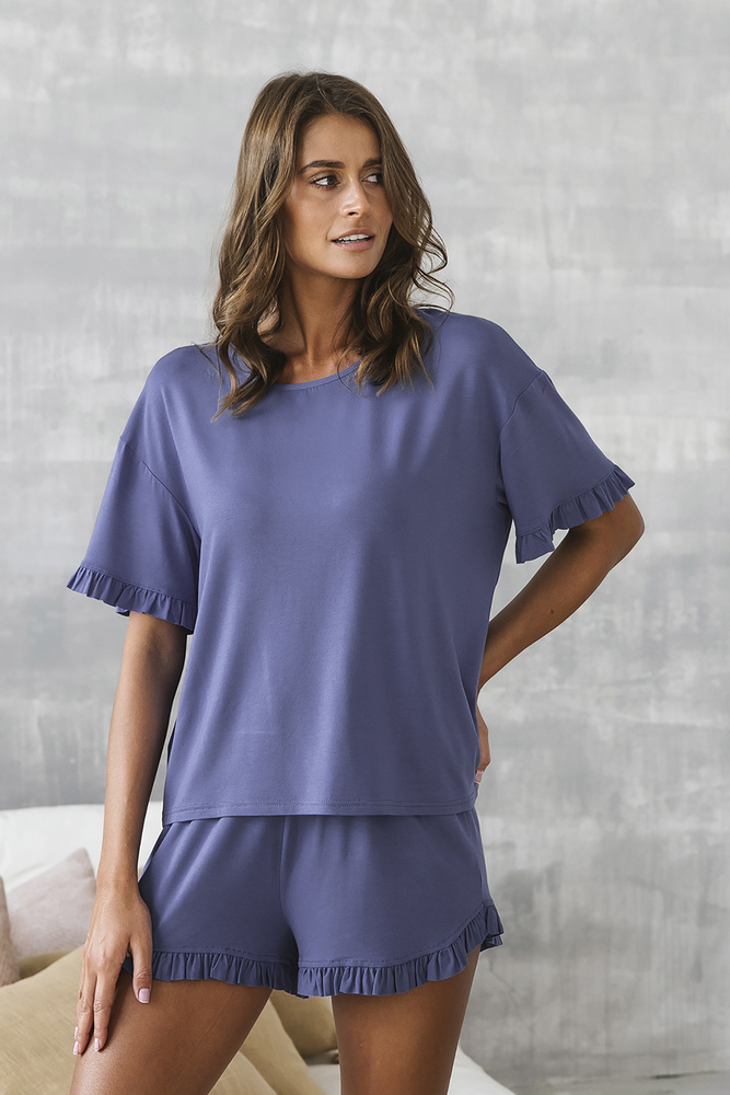 Styl Piżama Damska krótki rękaw, spodenki Italian Fashion - niebieski