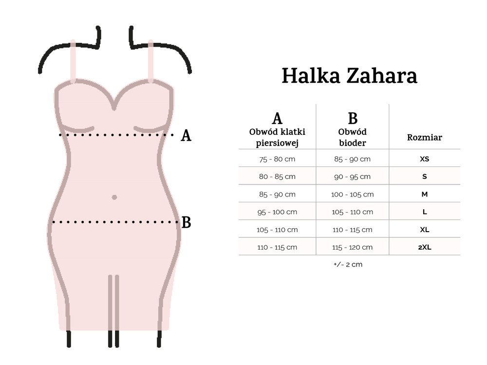 Przepiękna koszulka nocna od Dkaren. Halka Zahara sprawi, że poczujesz się seksownie i wyjątkowo. Świetnie układa się na ciele i podkreśla figurę. Wykończona u góry i na dole subtelną koronką. Halka ma regulowane ramiączka, więc możesz decydować o ich długości. Halka Zahara sprawia, że każda kobieta poczuje się pięknie i zmysłowo. Jeśli planujesz swoją noc poślubną lub miesiąc miodowy ta propozycja jest dla Ciebie.