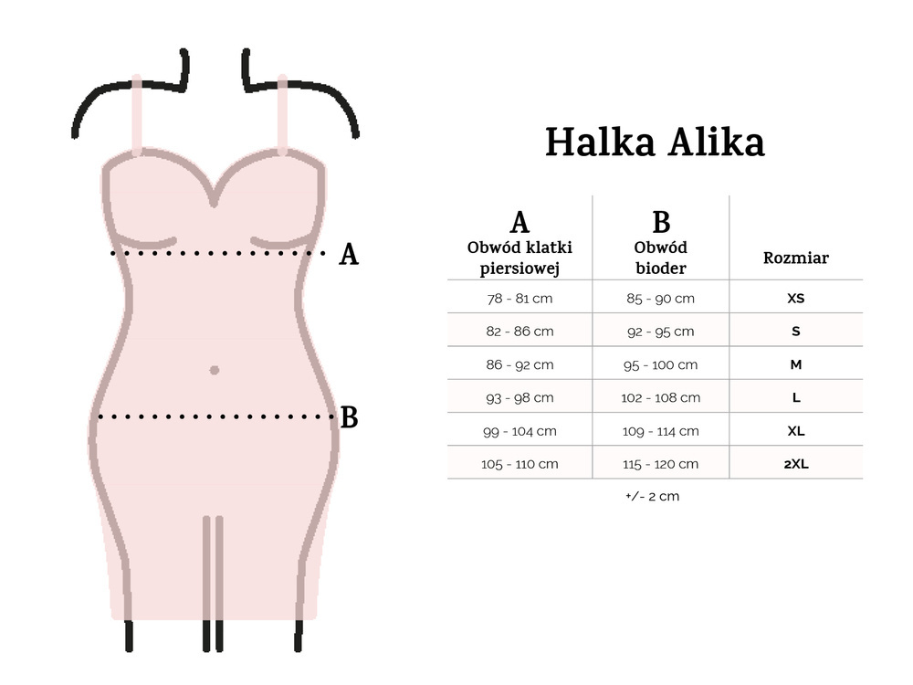 Halka Alika to połączenie seksownej koronki i zmysłowej satyny. Haleczka pięknie podkreśli nawet mały biust. Jej trójkątne miseczki obszyte są koronką. Cienkie ramiączka halki mają możliwość regulacji, co pozwoli Ci na dopasowanie ich do swojej sylwetki. Ta gorąca propozycja z pewnością rozpali niejeden wieczór we dwoje.