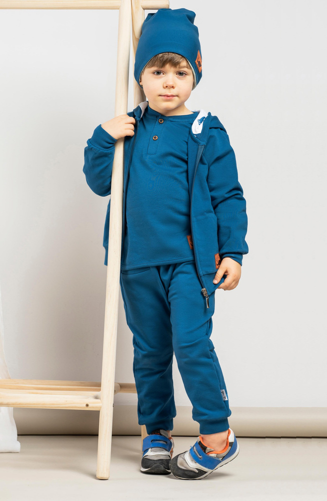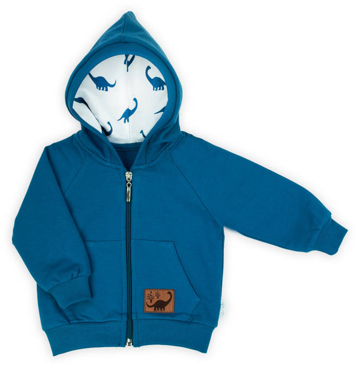 Bluza z kapturem, wykonana z miękkiej i przyjemnej w dotyku bawełny. Zapinana na zamek. Wykończona miękkimi ściągaczami. Wyprodukowana w Polsce.