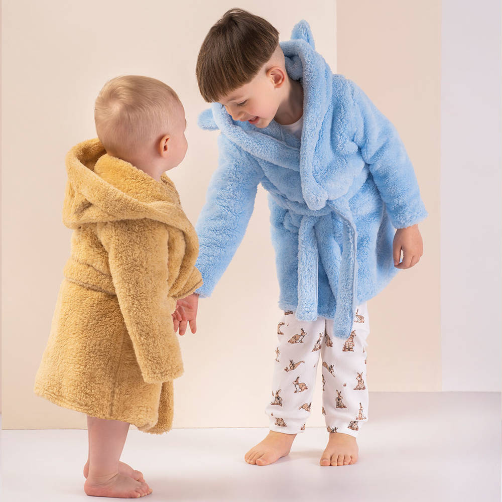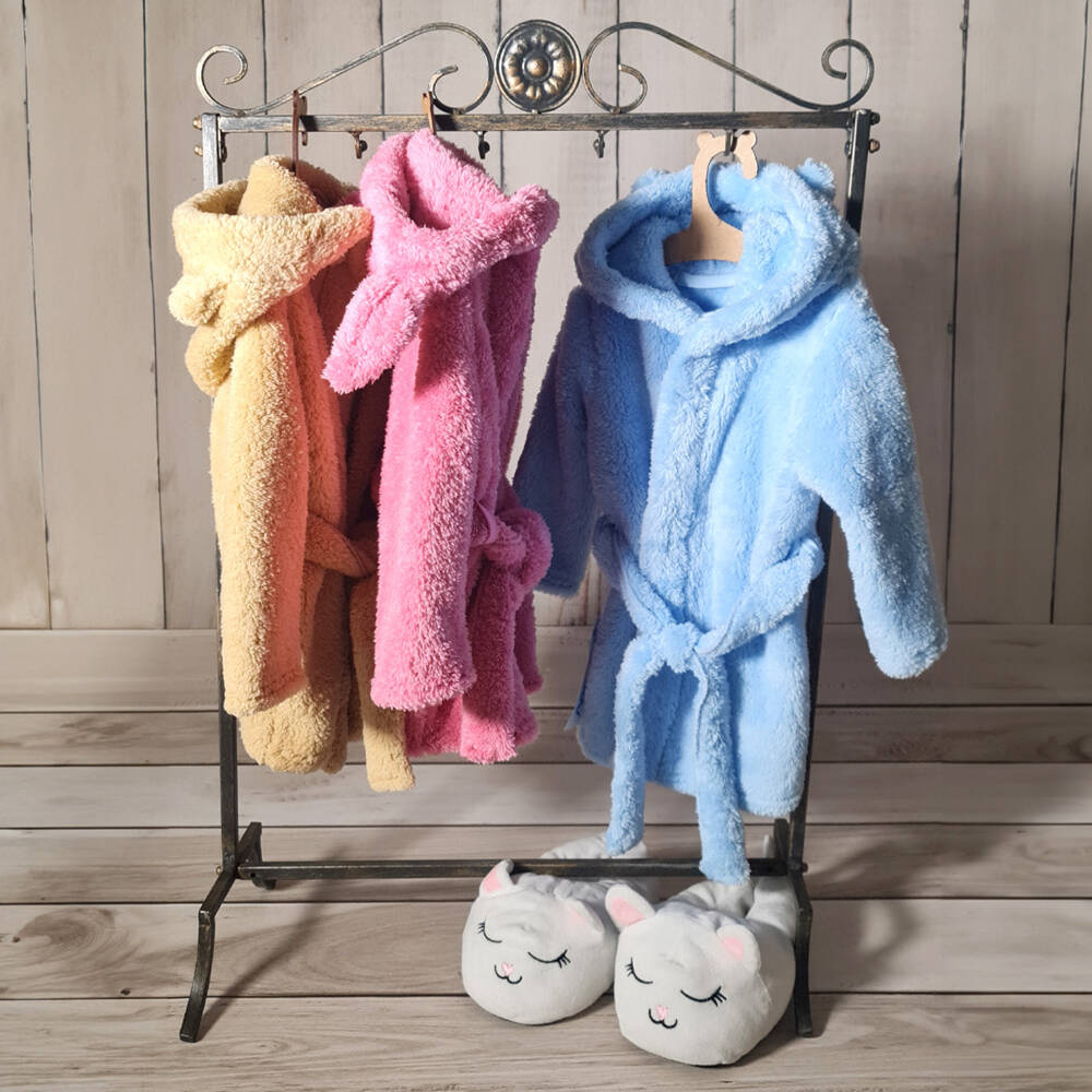 Dziecięcy szlafrok wykonany z mięciutkiej dzianiny. Posiada wygodny kaptur, który otuli głowę Twojego dziecka. Wiązany w pasie. Zagwarantuje ciepło i zapobiegnie przed wychłodzeniem po kąpieli.