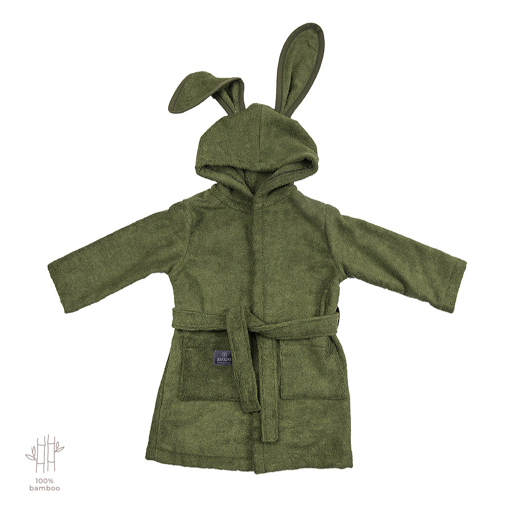 Szlafrok sprawdzi się na basenie, czy na plaży, otuli i ogrzeje delikatną skórę dziecka. Posiada praktyczny kapturek i kieszonki na drobiazgi, na kapturku przesłodkie uszka. W górnej części ma troczek ułatwiający zawieszenie. Rozmiar szlafroka jest uniwersalny i pasuje dla dzieci noszących rozmiary ubranek 92-110. Mniejszym dzieciom można podwinąć rękawek i bardziej owinąć je szlafroczkiem.