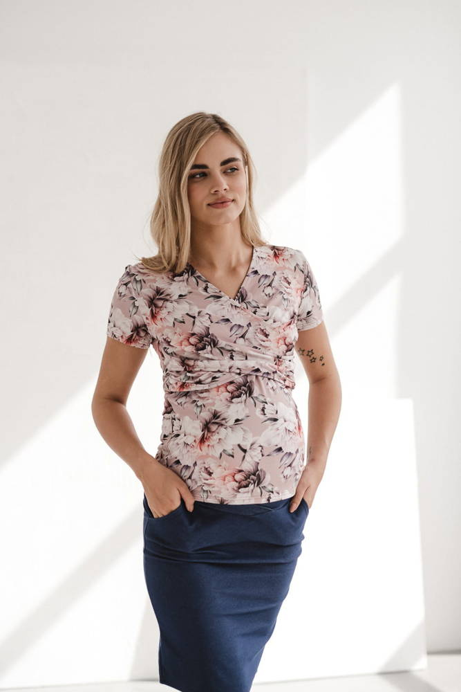 Milk Bar Bluzka do karmienia i ciążowa Milk&Love brudny róż w kwiaty
