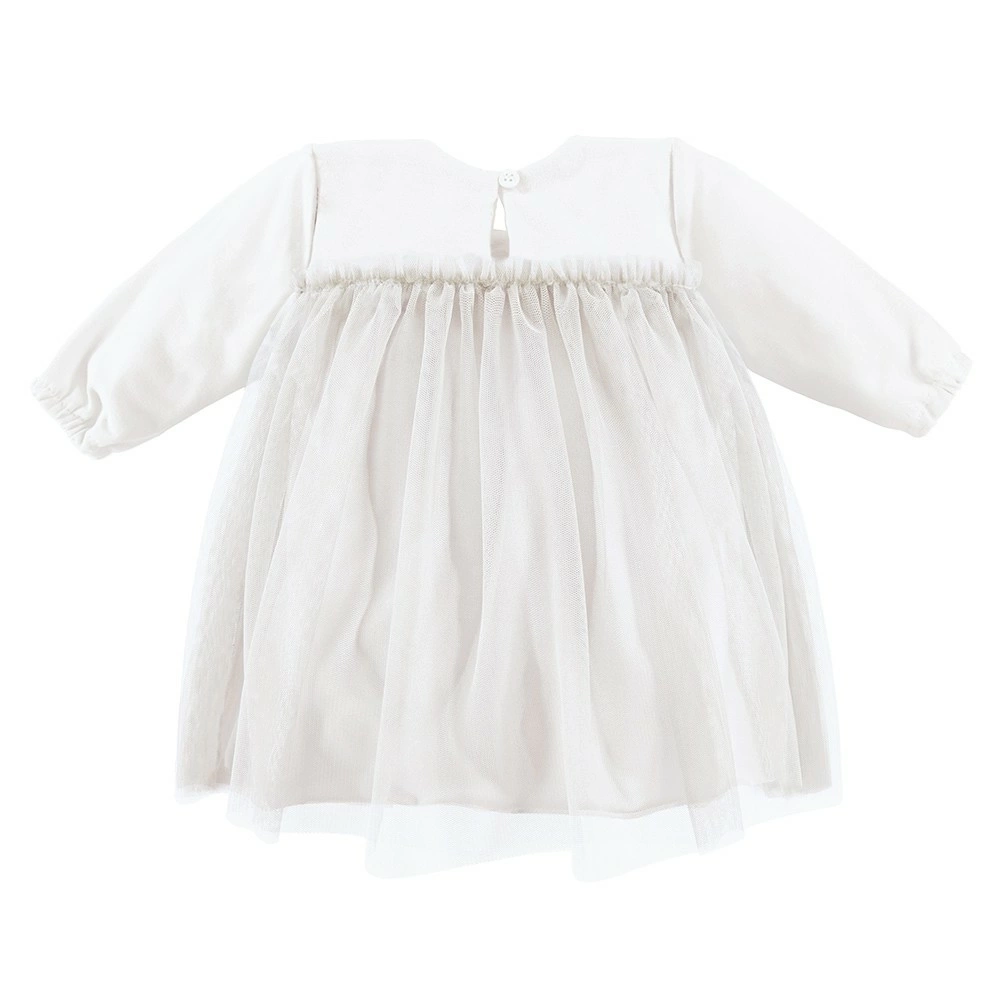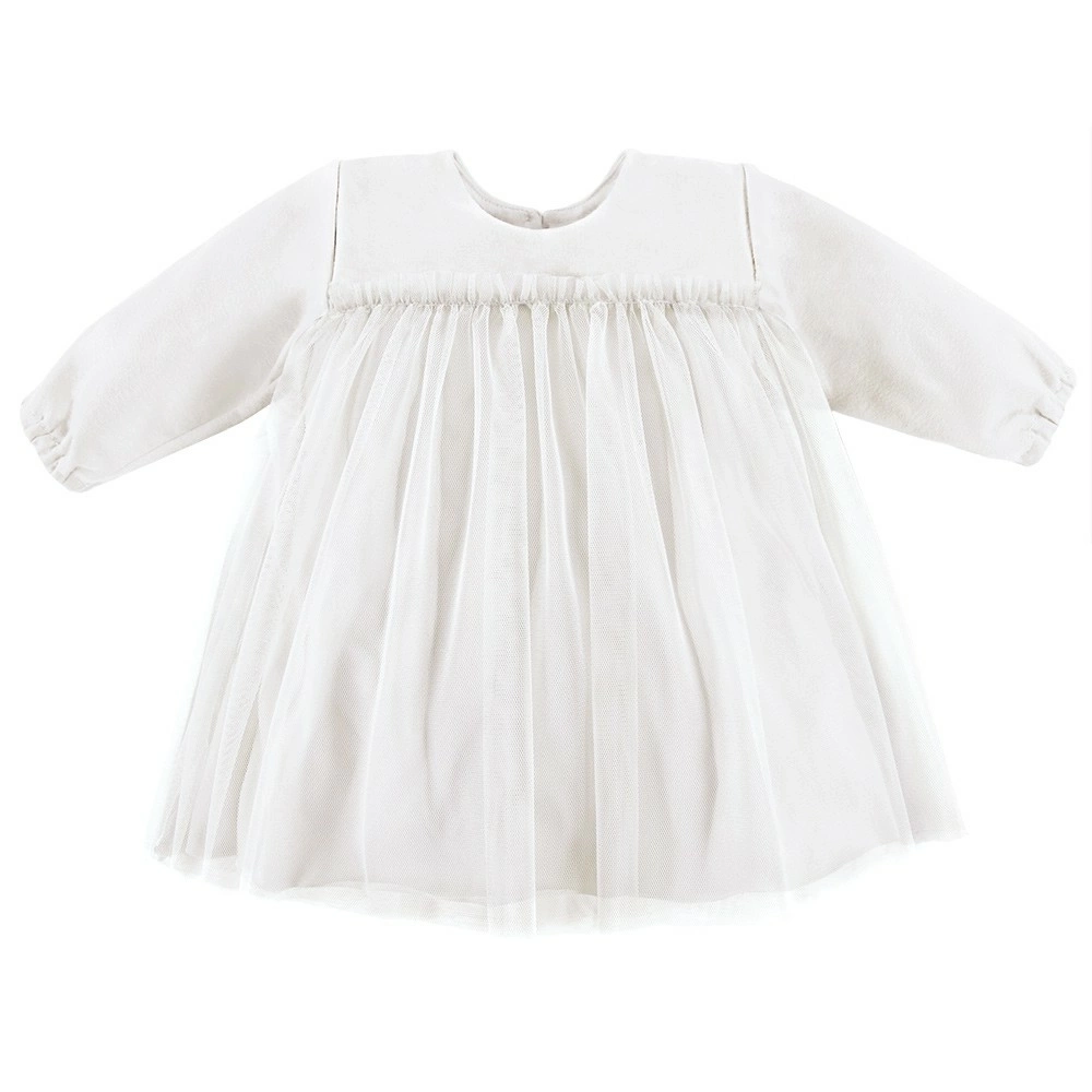 Sukienka dziewczęca z kolekcji Ceremony. Uszyta z wysokogatunkowej bawełny oraz tiulu. Z tyłu znajduje się zapięcie na guziczek. Sukienki dziecięce i niemowlęce z kolekcji Ceremony są niezwykle eleganckie. Wygoda i elegancja, to myśl przewodnia kolekcji Ceremony.